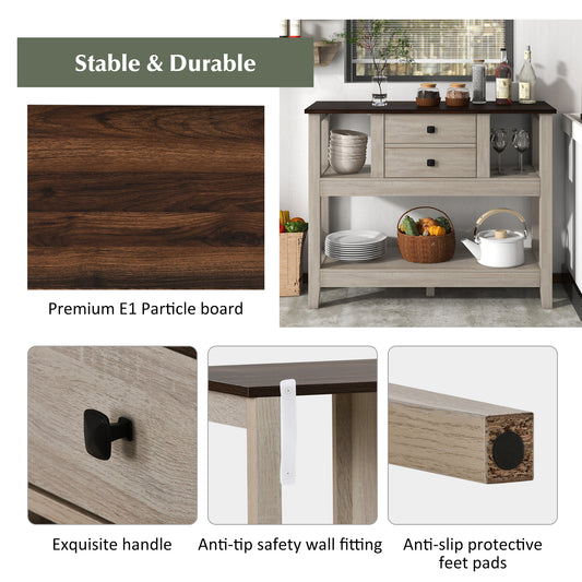 2 drawers Sideboard, Kitchen Buffet, Cupboard Storage Cabinet, natural, 106*40*90 cm