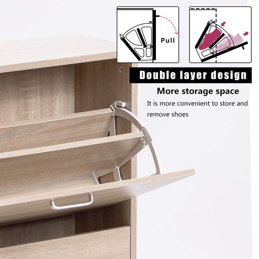 3-Drawer Wooden Shoe Storage Cabinet Cupboard Shoe Storage Organiser Unit Pull Down Wooden Furniture Wood Unit