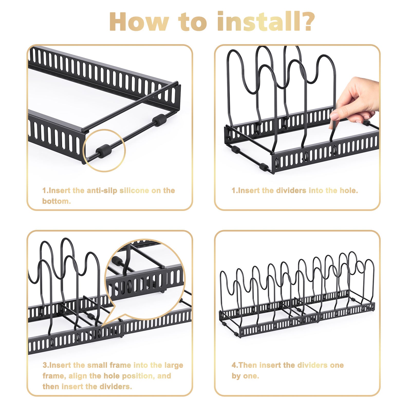 Expandable Pans Organiser Rack,Pot And Pan Lid Holder With 10 Adjustable Dividers,Bakeware Saucepan Lid Storage For Kitchen Cupboard, Black
