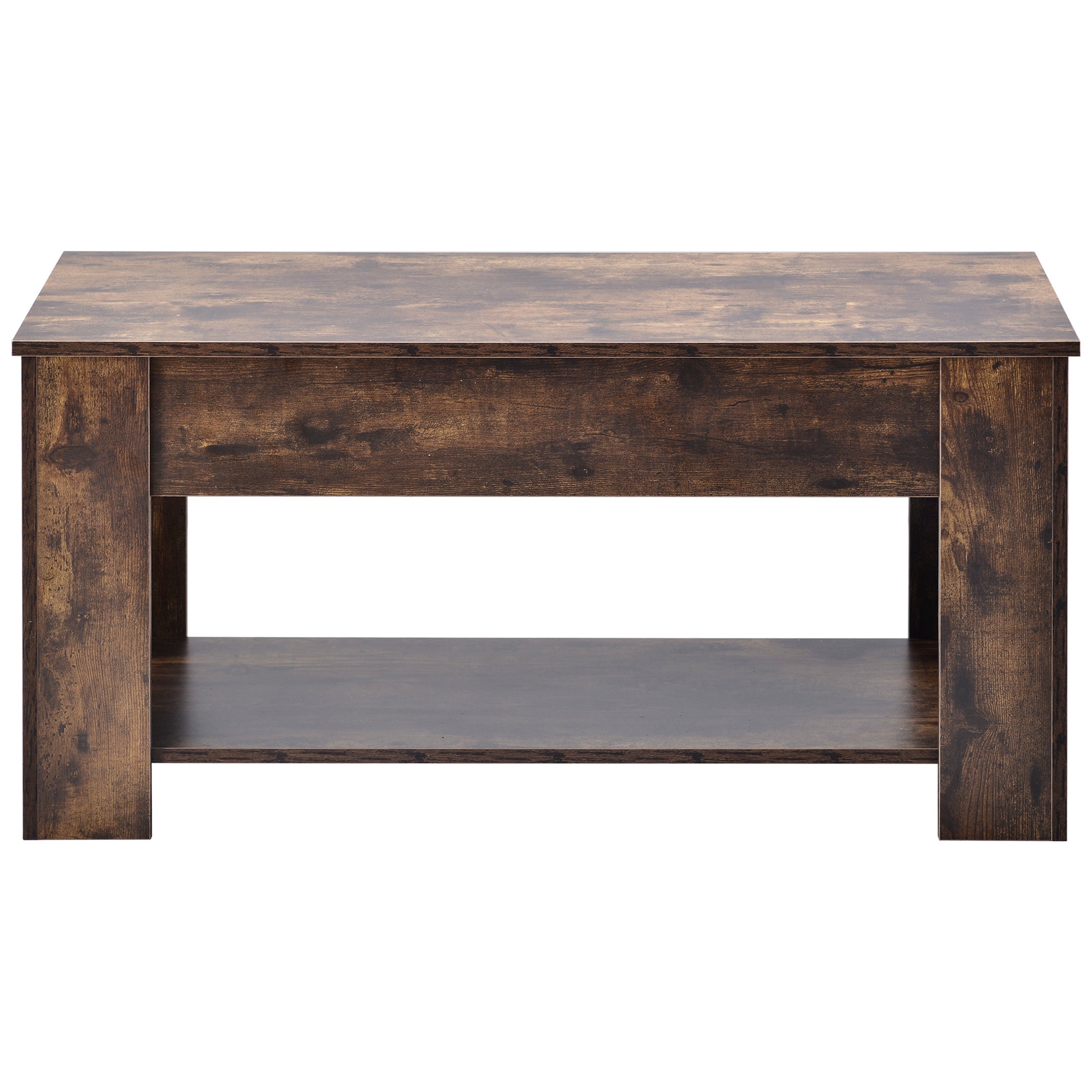 Lift up Top Coffee Table with storage and shelf living room(Rustic Brown)
