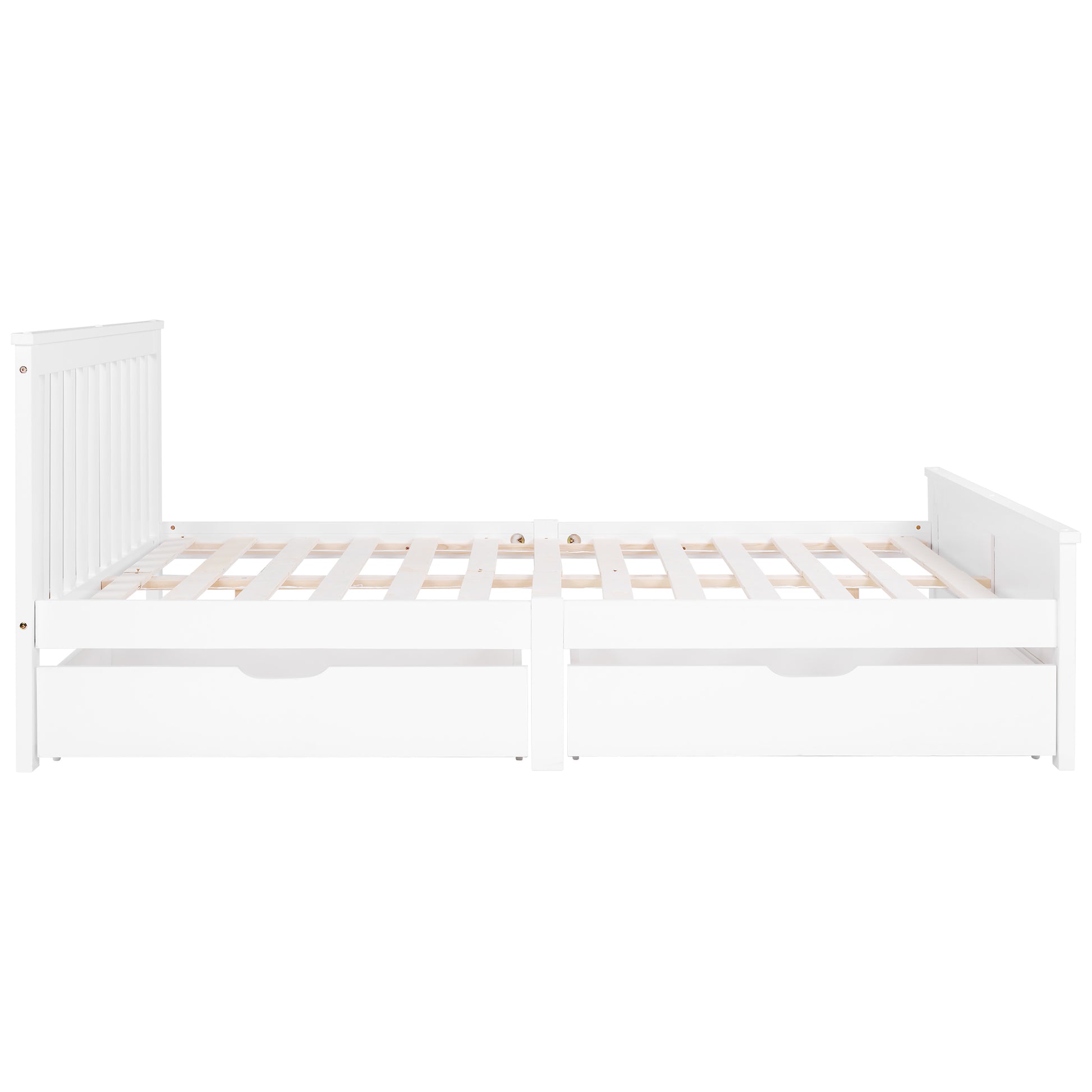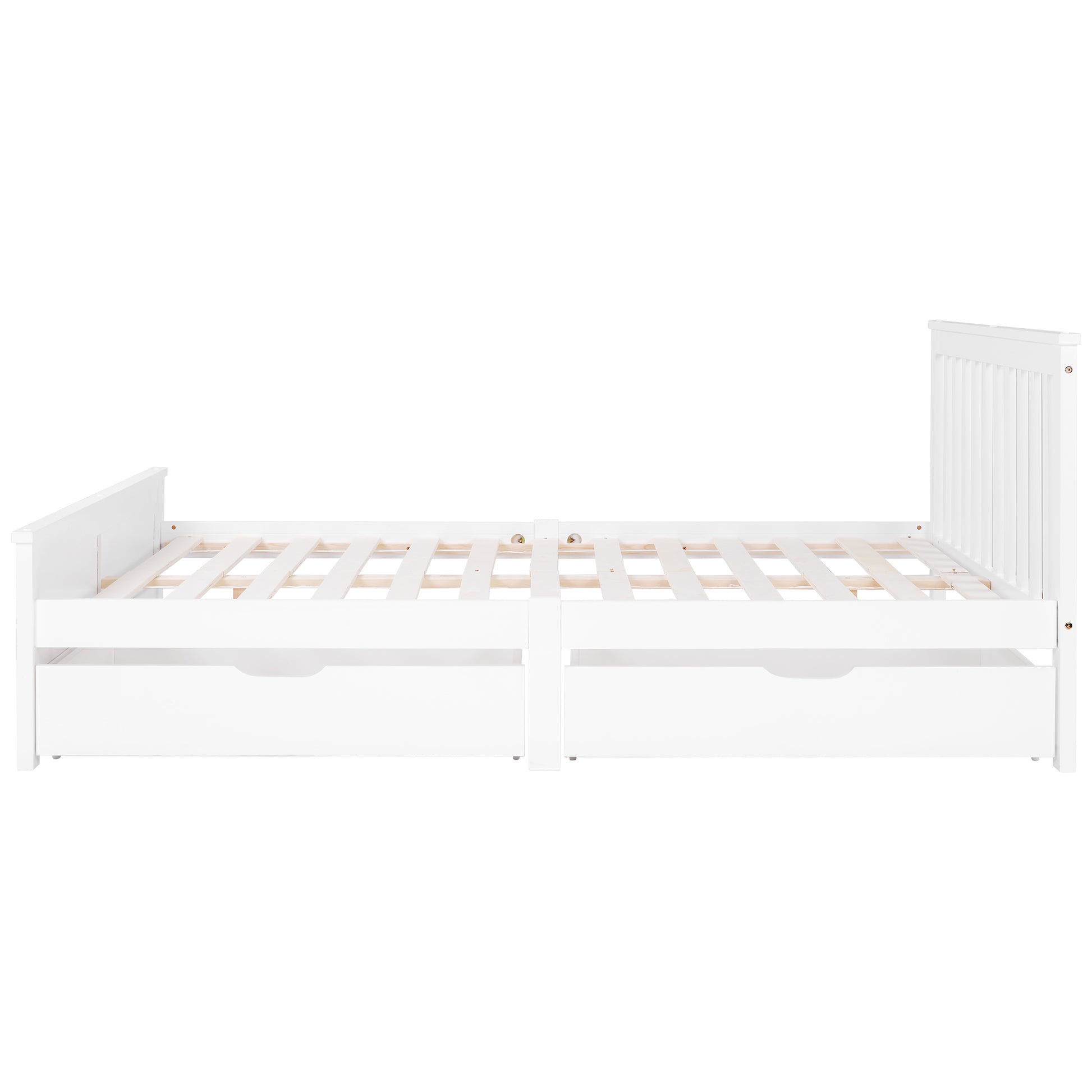 Wooden Solid White Pine Storage Bed With Drawers Bed Furniture Frame For Adults, Kids, Teenagers 4ft6 Double (White 190x135cm)