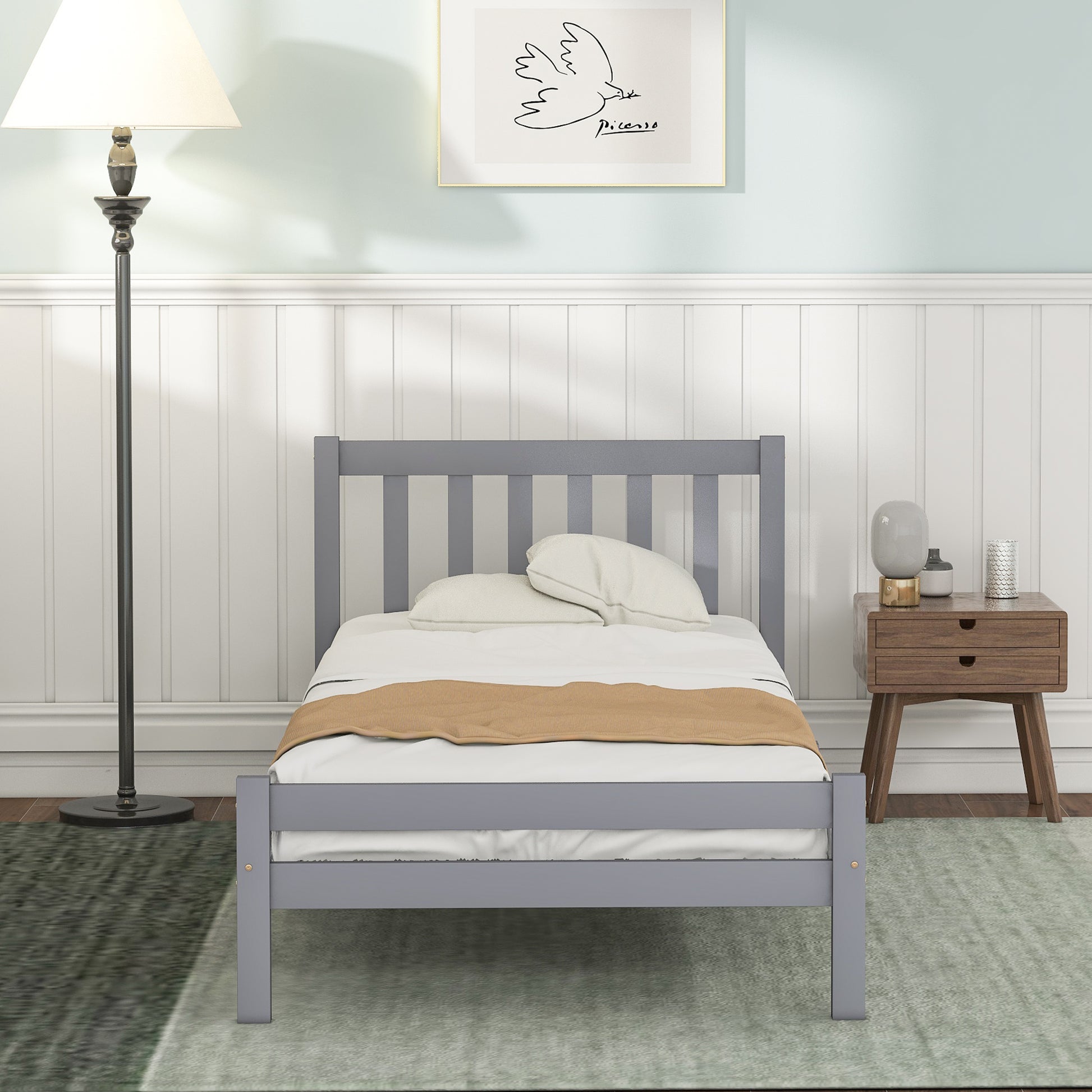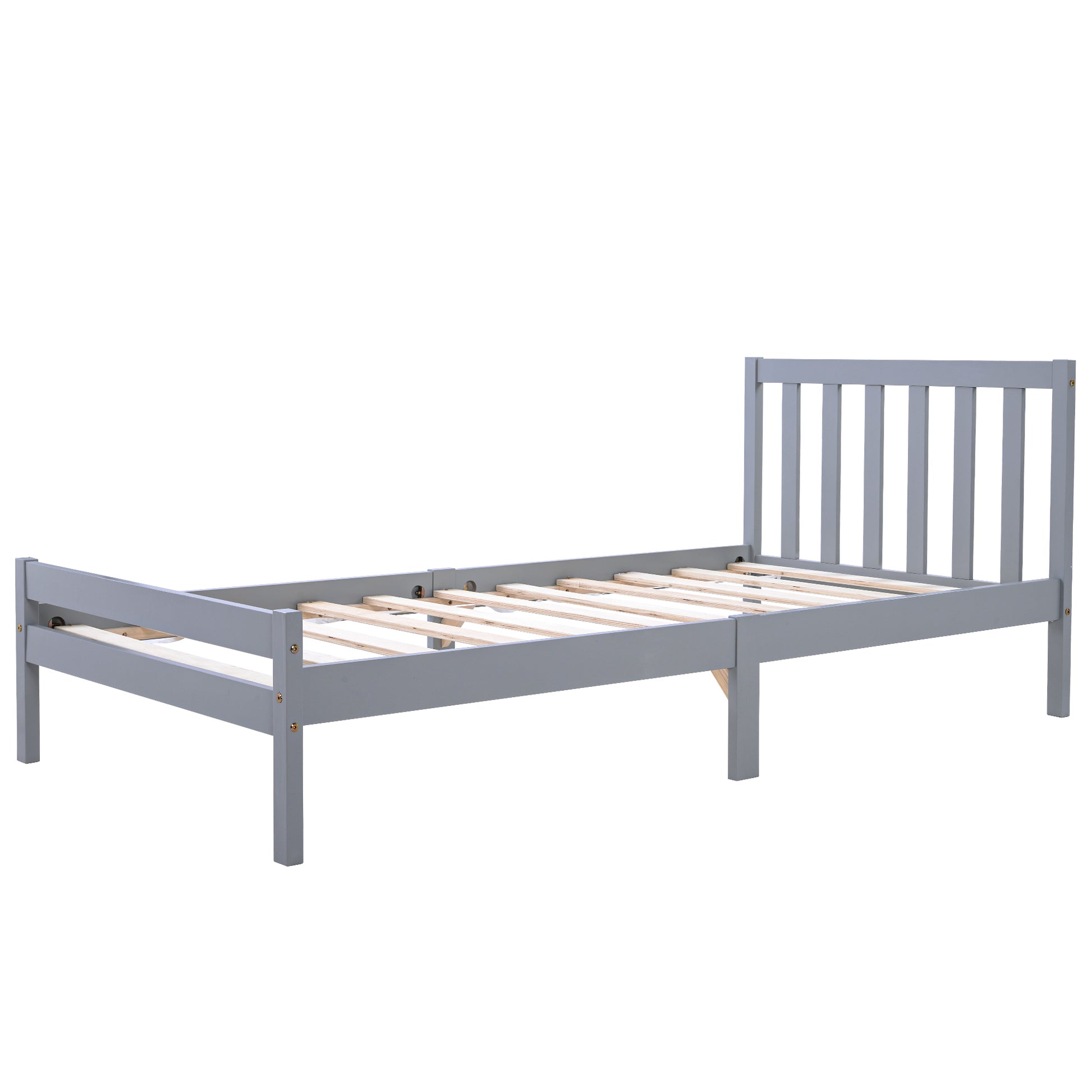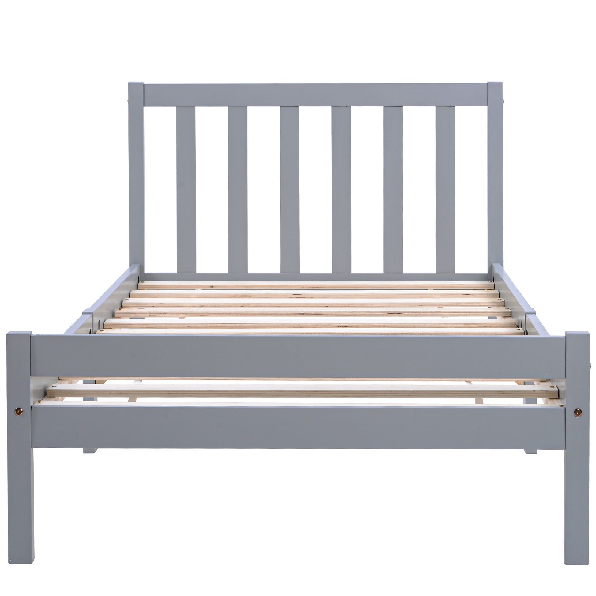 Wooden Bed Frame, Single Bed 3ft Solid Wooden Bed Frame, Bedroom Furniture for Adults, Kids, Teenagers ,90 x 190 cm (Grey)