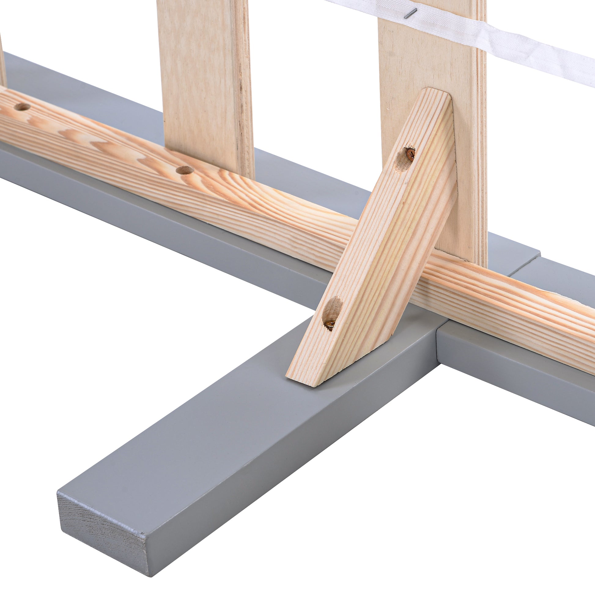 | Green environmental protection paint is used for the grey finish, non-toxic and harmless to your family. The wooden headboard and footboard can protect little ones from falling down to the floor. | |