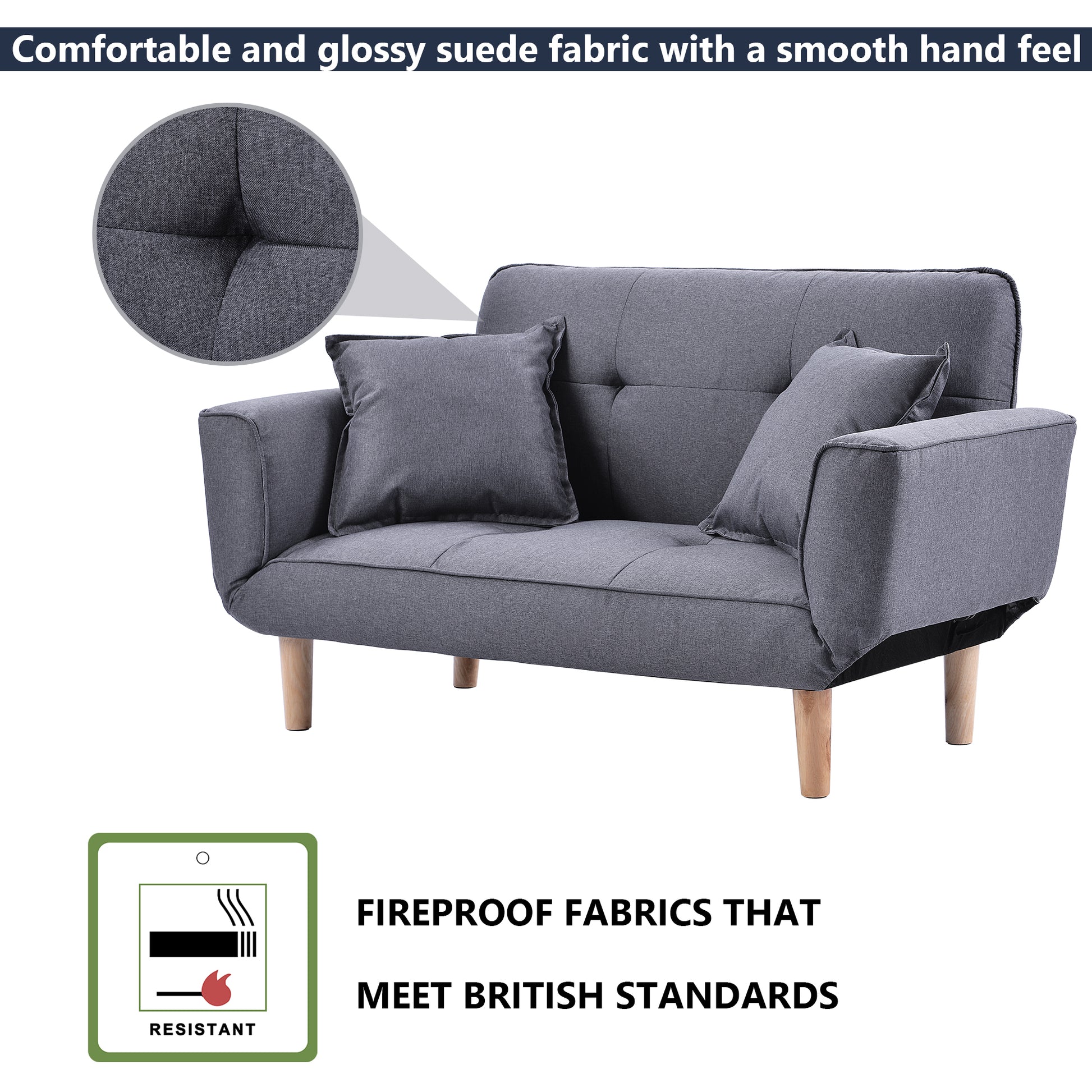 【Sturdy and Comfortable】: The 2 seater sofa is made of breathable linen fabric for comfort and wear resistance. Strictly British Standard fireproof fabric is used for safety. The sofa is made of wooden frame and solid wood legs, durable and sturdy. In addition, this sofa bed structure is sprung and foam so it is more comfortable when you sit or sleep.
