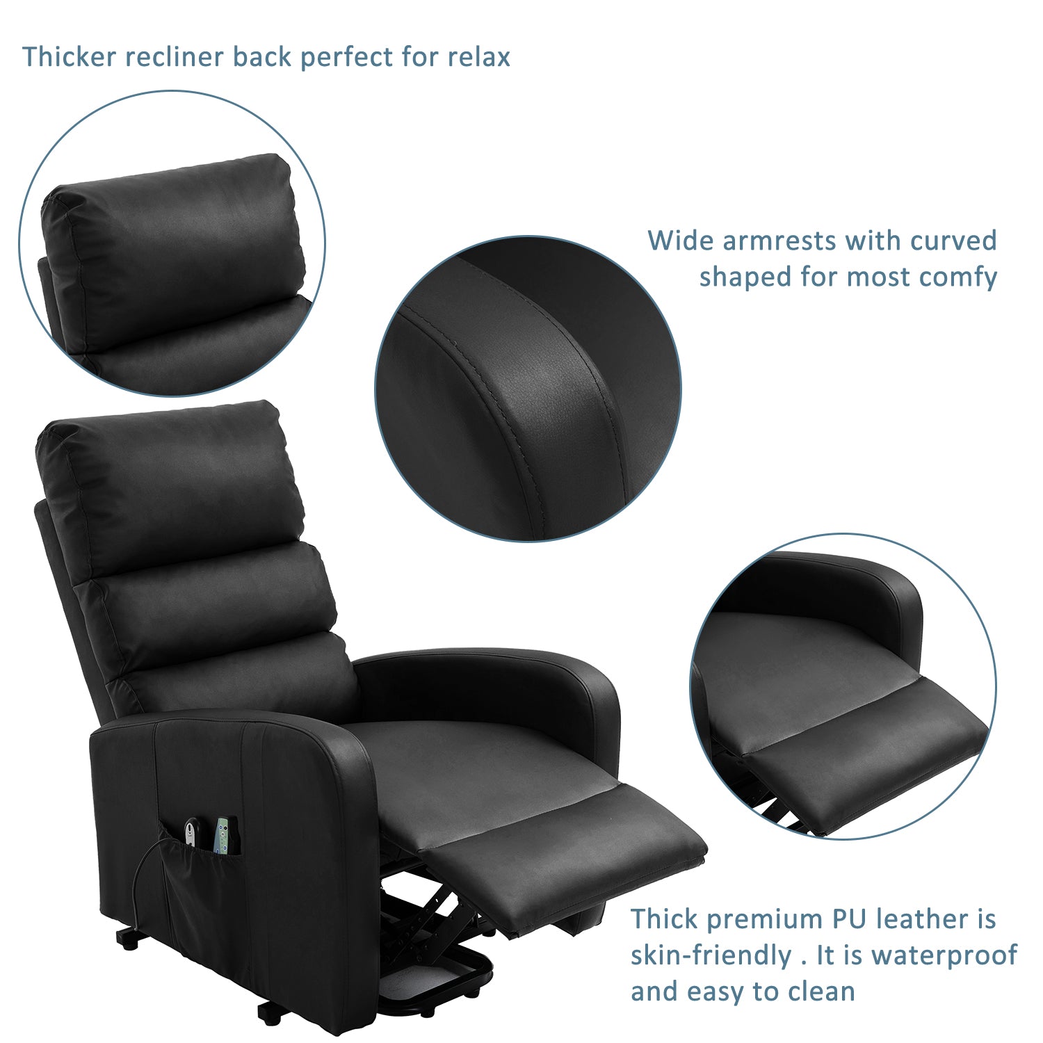 Power Massage Lift Recliner Chair with Heat & Vibration for Elderly, Heavy Duty and Safety Motion Reclining Mechanism, 2 Side Pockets , Remote control, Faux Leather