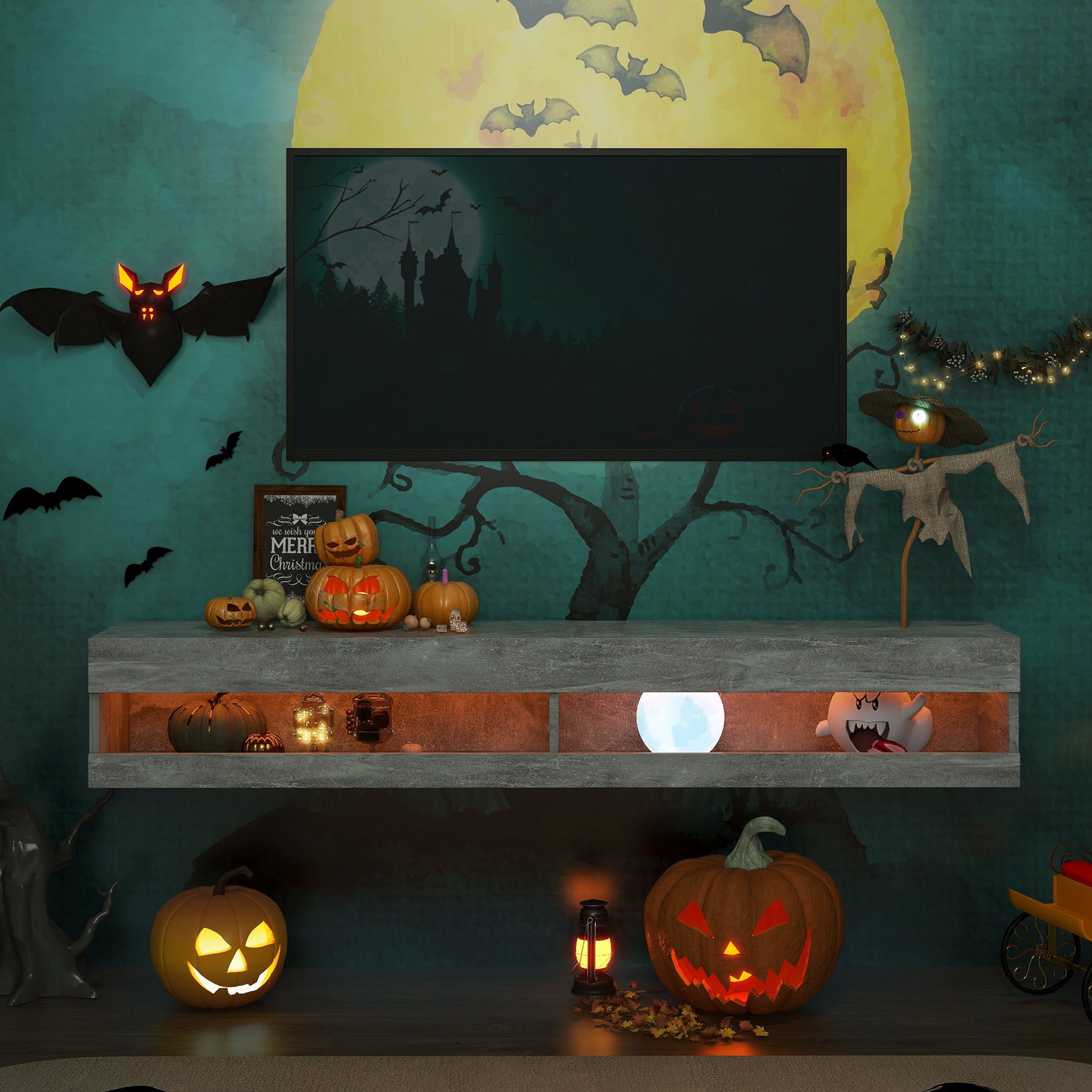 TV Stand with LED Lights, Floating Entertainment Center Media Console, Wall Mounted High Gloss Modern Storage Shelf
