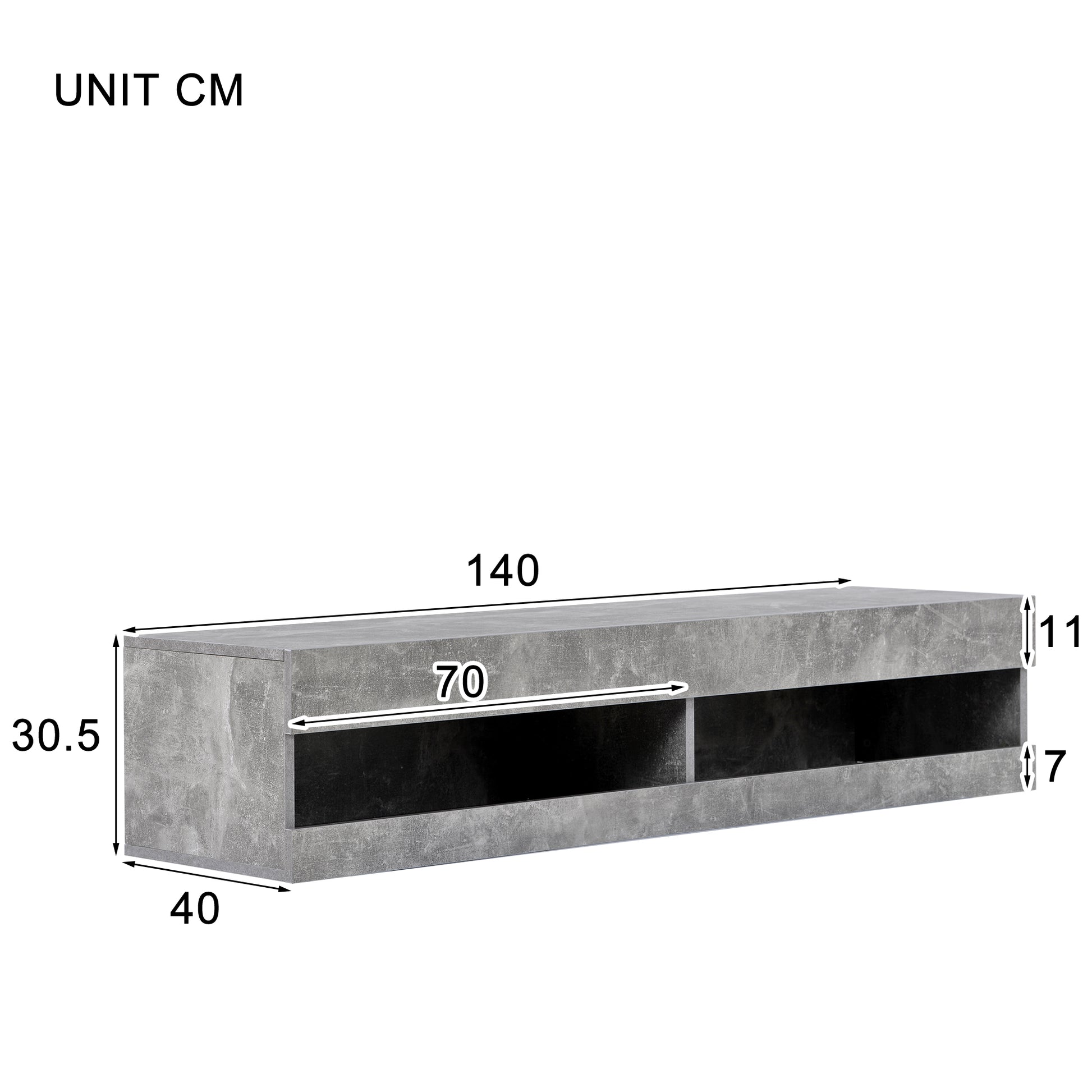 Durable and Stable: This floating tv stand is made of thicken MDF material with glossy paint process, which has stronger bearing capacity, fit up to 65 inch tv console , dimensions is 140cm W x 40cm D x 30.5cm H.